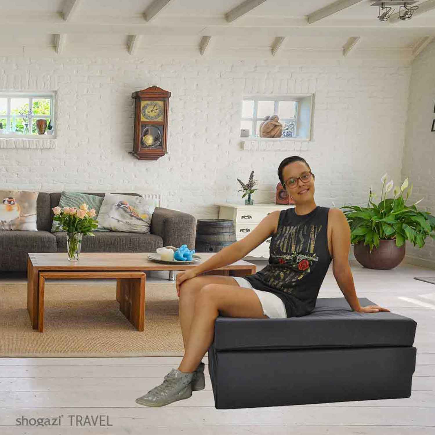 Diese Klappmatratze beweist ihre Funktionalität sowohl Zuhause als auch auf Reisen. Egal ob als Gästebett, Hocker, Tisch, Reisematratze oder aber als Liegewiese für Kinder.