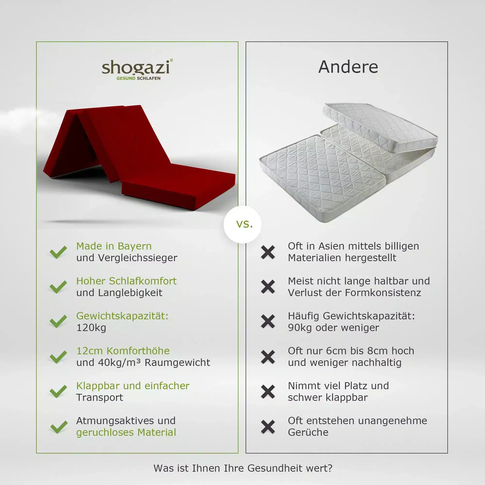 Faltmatratze mit hervorragender Liegequalität von shogazi® TRAVEL